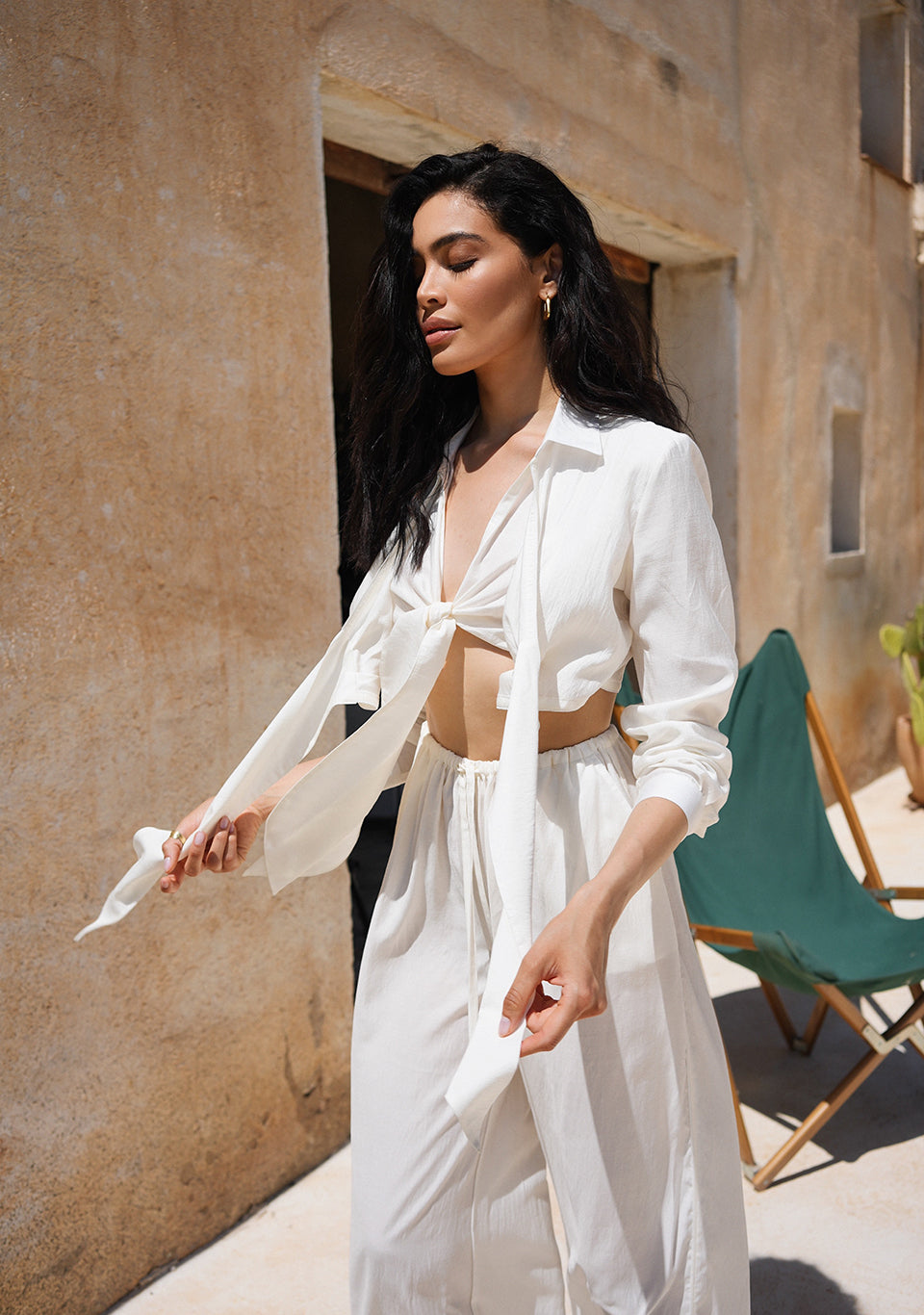 A beautiful cropped shirt, decorated with small lace with interesting details, combined with pants will make your vacation look even more relaxed and stylish.