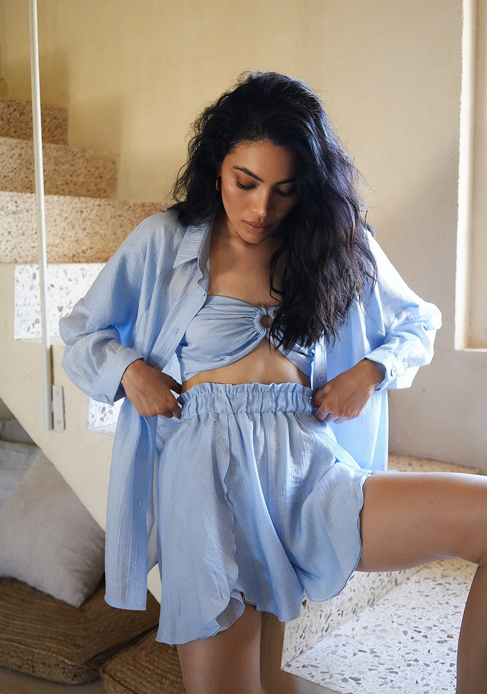 The suit consists of a comfortable and stylish loose-fitting shirt, a top and comfortable shorts. An ideal choice for travel.      #PHOTODAY