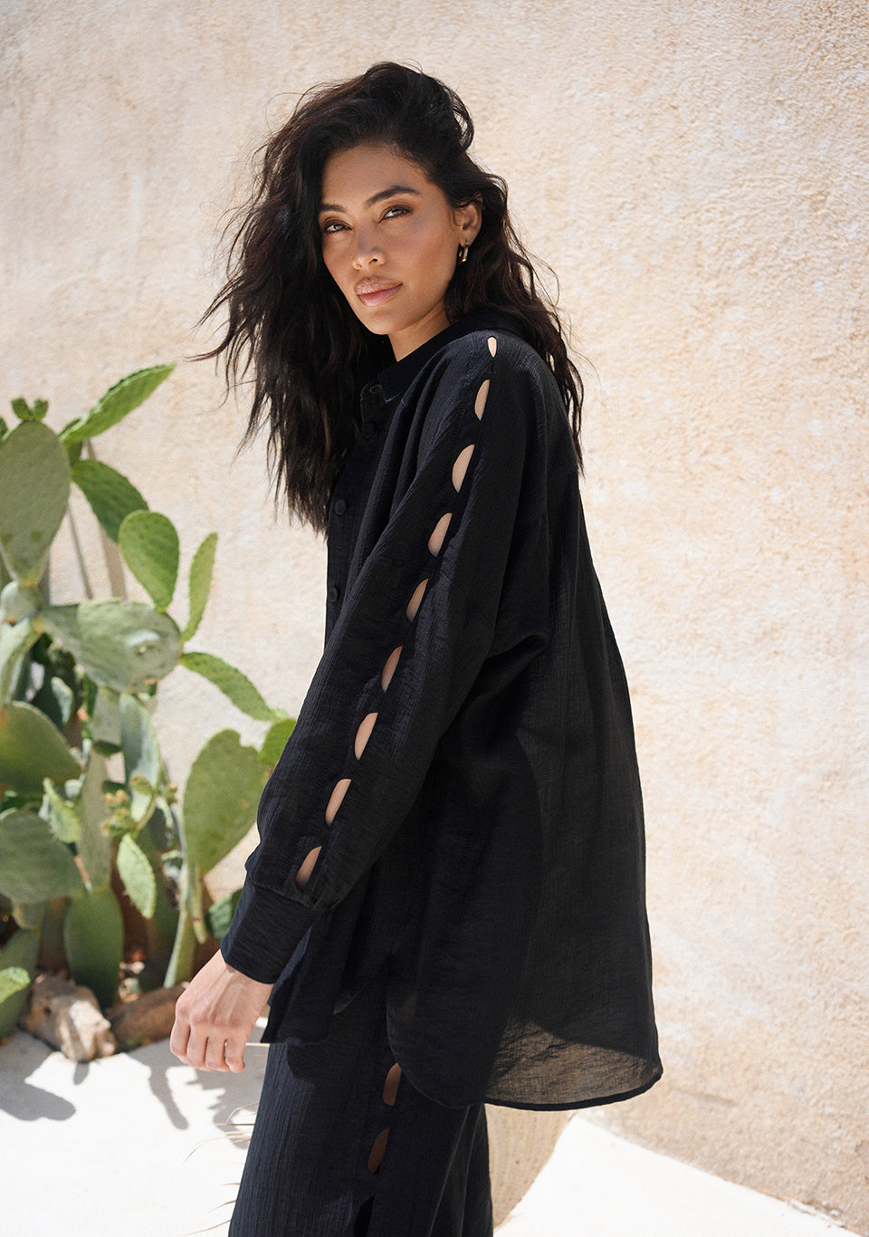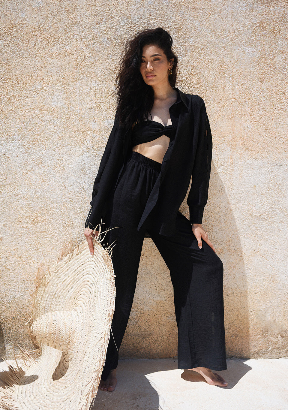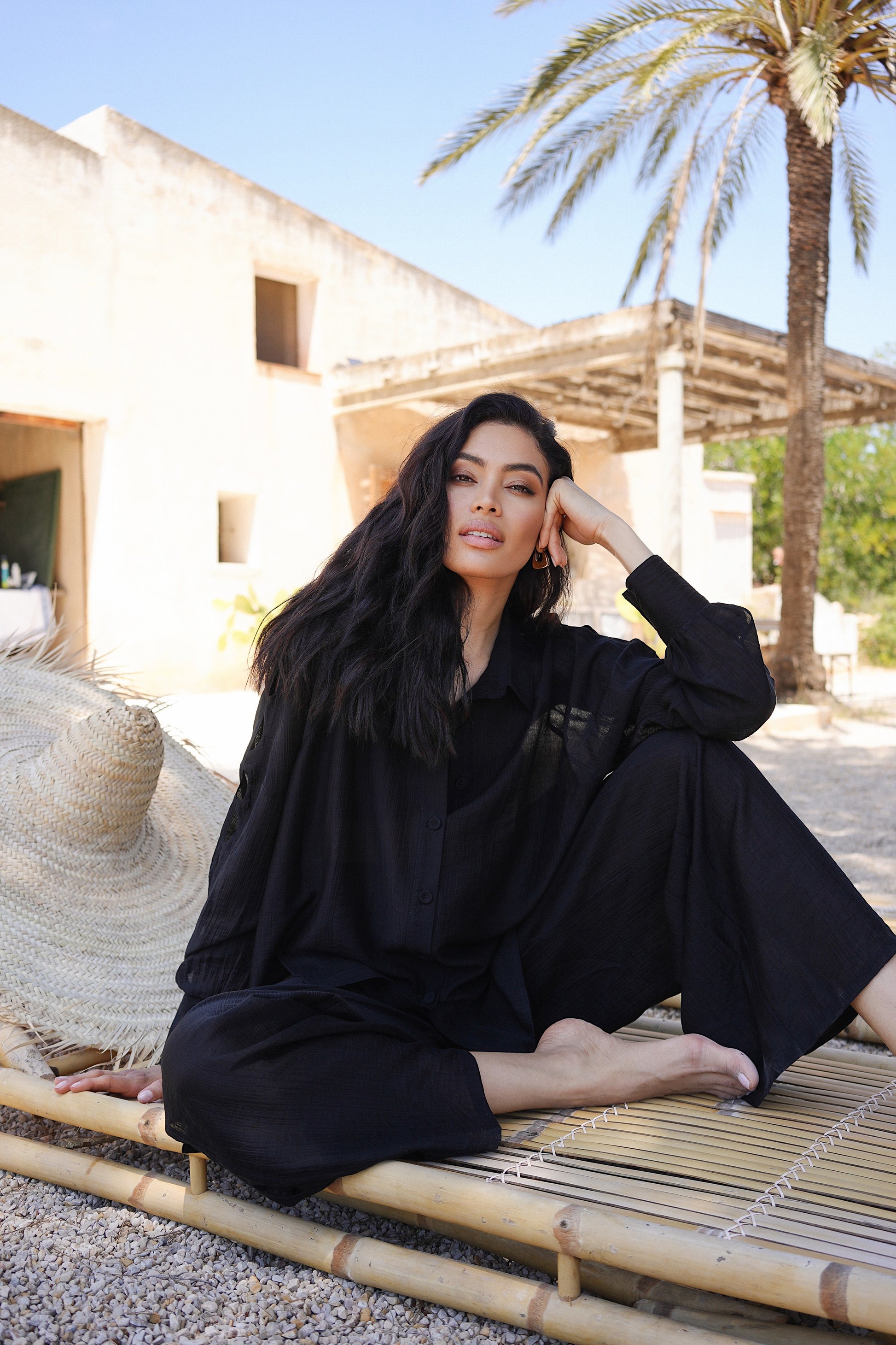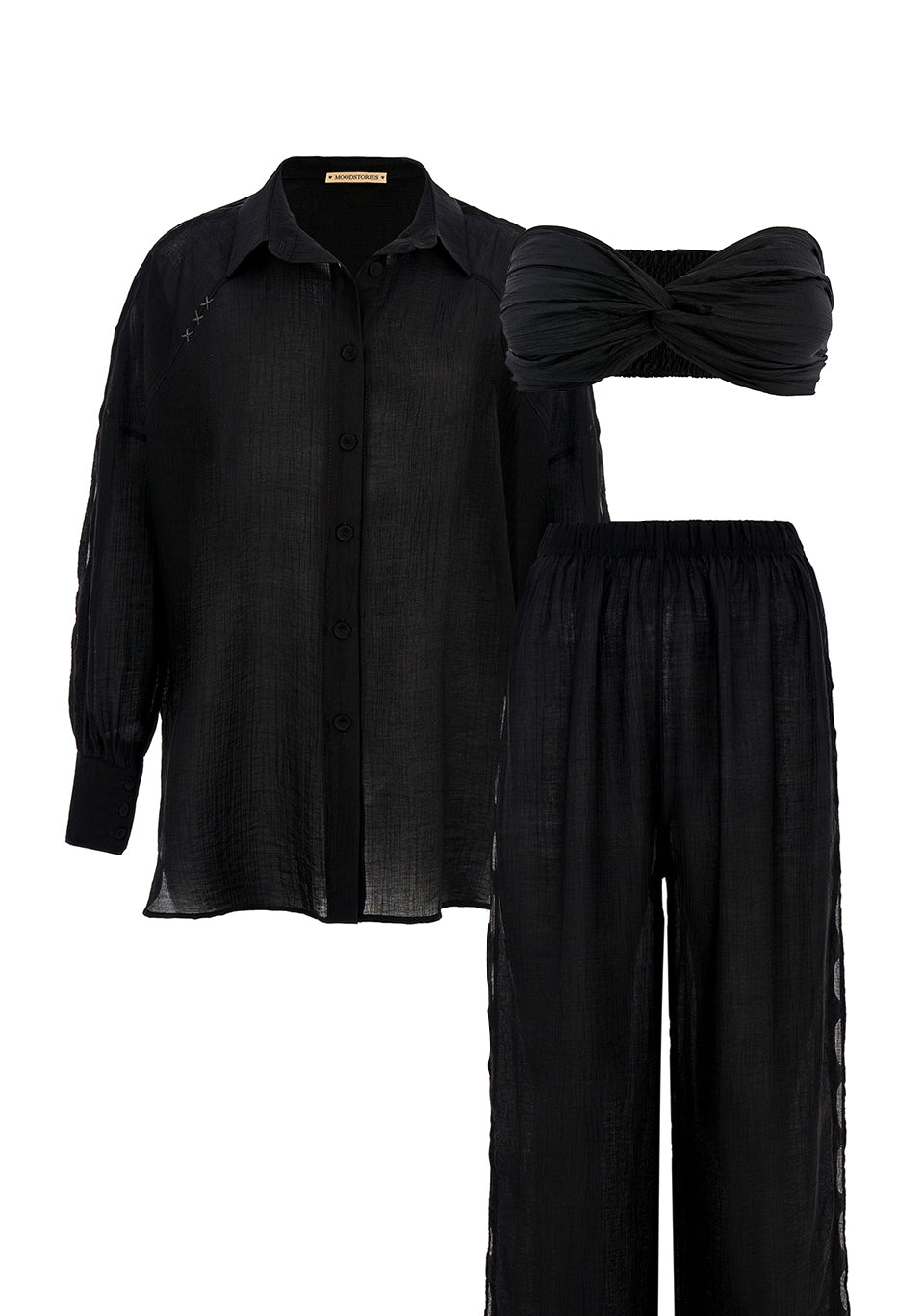 A suit that is decorated with an unusual design and due to its loose fit, will give you a feeling of freedom and comfort. The top, pants and shirt can be combined with each other, creating many travel looks.      #PHOTODAY