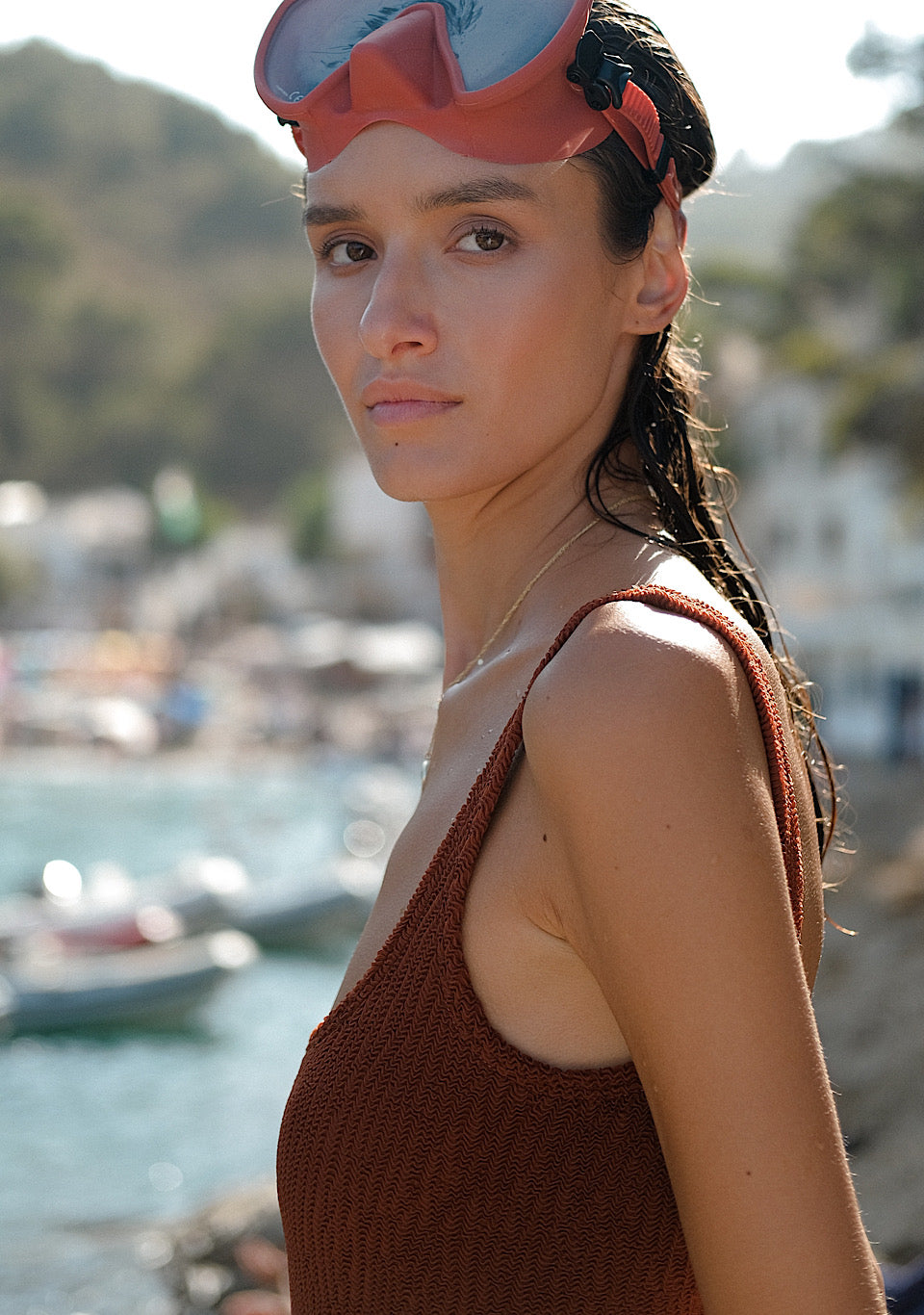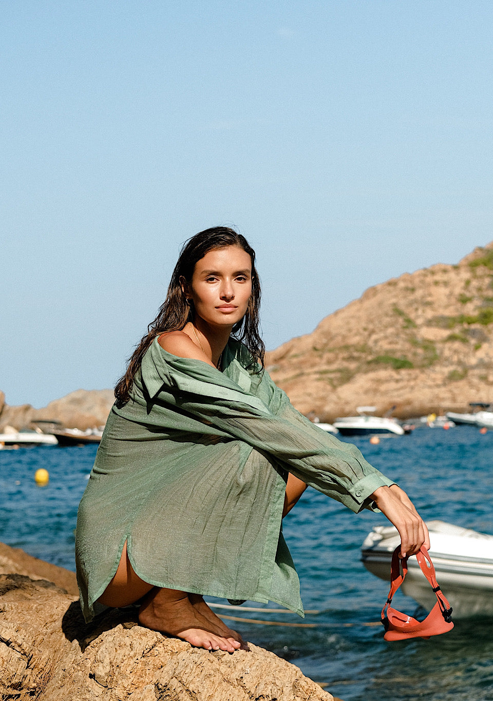The stretch lining sculptures the silhouette and the tissue does not shine through. This style perfectly seats on different body types and is comfortable to relax on the beach.